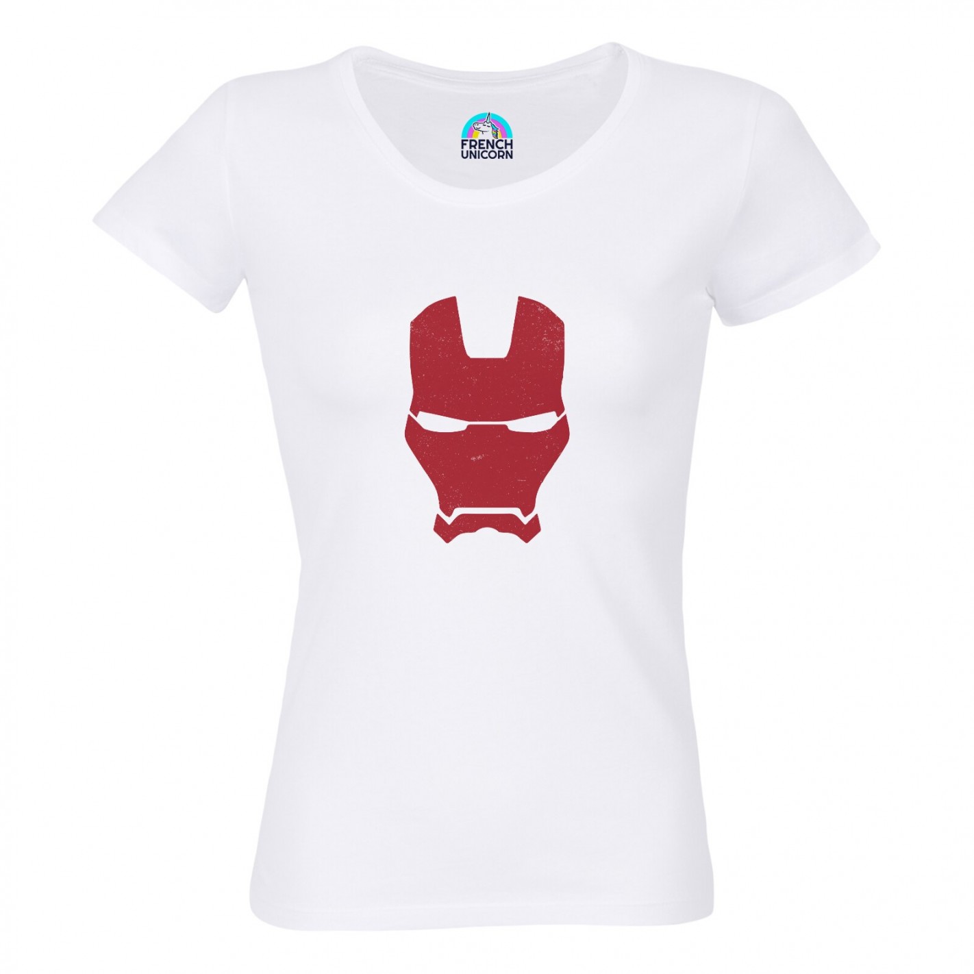 T-shirt Femme Col Echancré Iron Man Masque Super Héros BD Film Geek