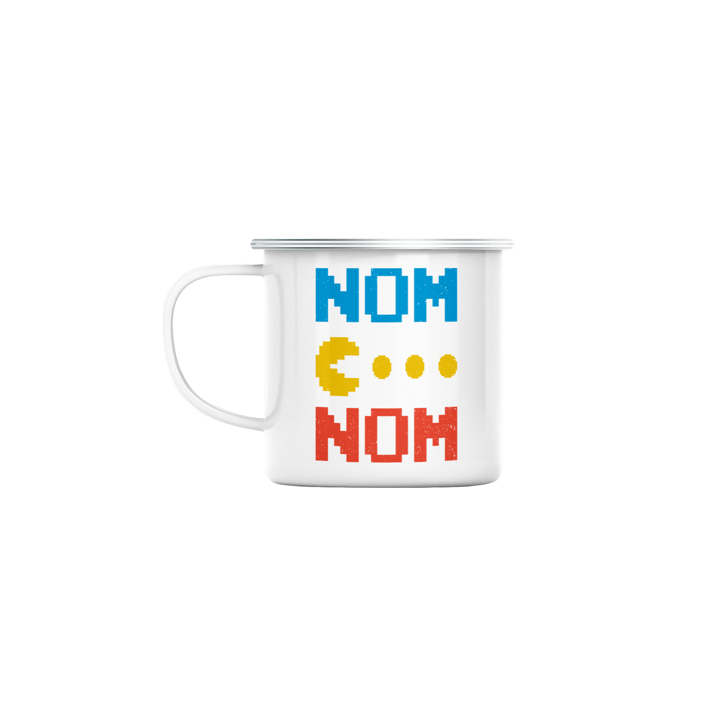 Mug GEEK en Métal Emaillé Pac-Man Nom Nom Jeux Vidéo Retro Gaming 8 Bit