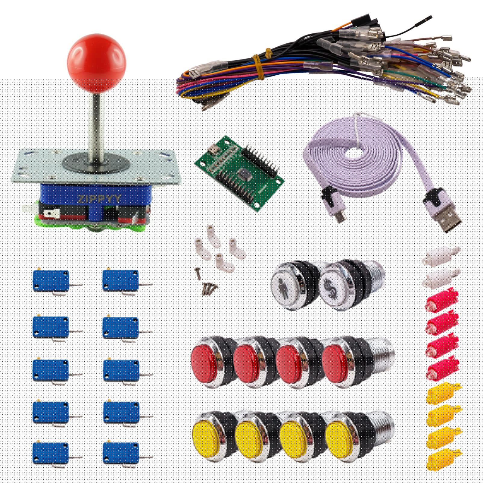 Kit Arcade 2 Joueurs Lumineux Boutons Chromes Joysticks Zippyy Tige Longue Boule Carte XinMoTek