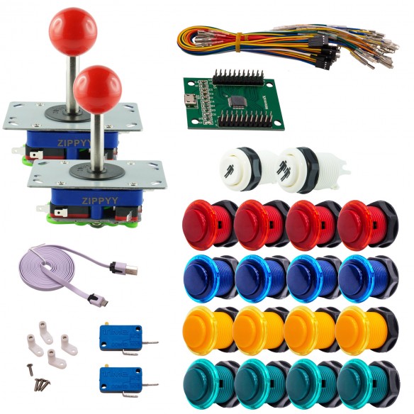 Kit Arcade 2 Joueurs Boutons Génériques Joysticks Zippyy Tiges Longues Boules Carte XinMoTek